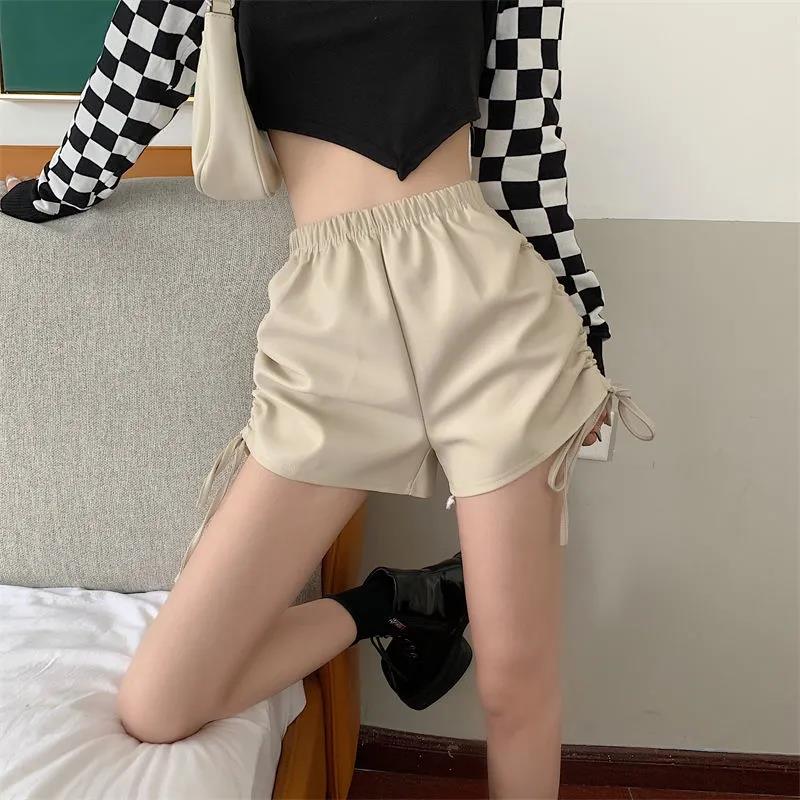 Leather Pants Women's Shorts Autumn and Winter Design Sense Drawstring Pure Desire Wind High Waist Thin A-line Casual Pants