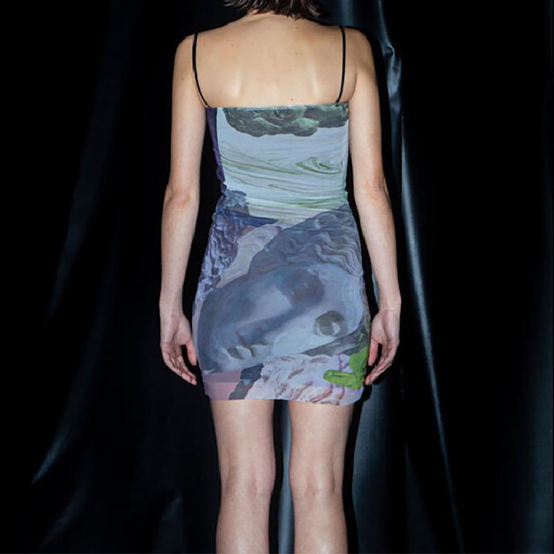Light Mature Style Personalized Print Halter Sleeveless Suspender Dress Sexy Slim Slimming Short Hip Dress