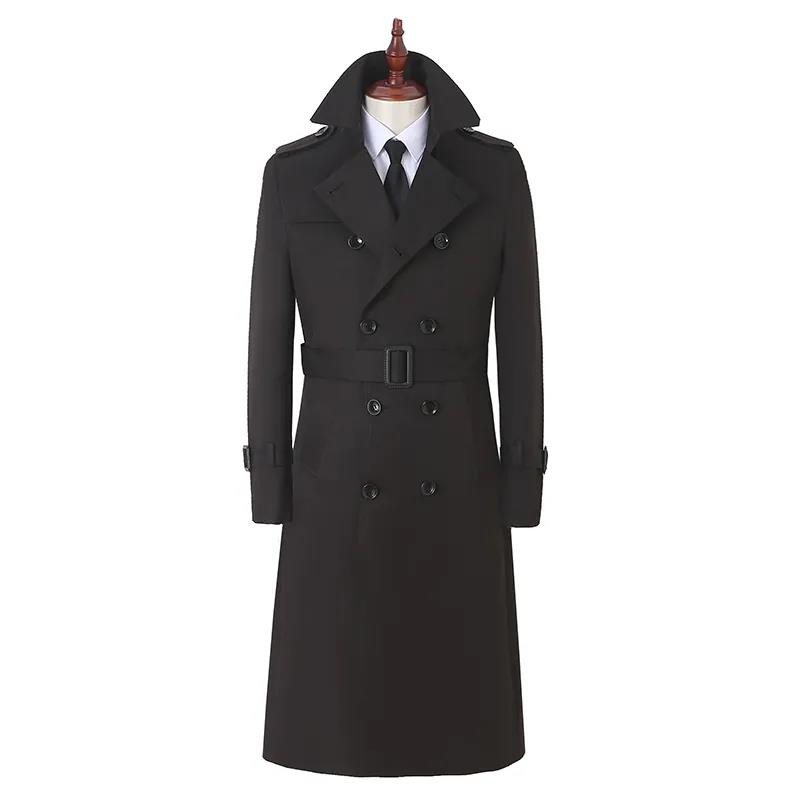 Long Over The Knee Cashmere Windbreaker V-neck Solid Color Robe Casual Slim Coat Gentleman Button Jacket Spring