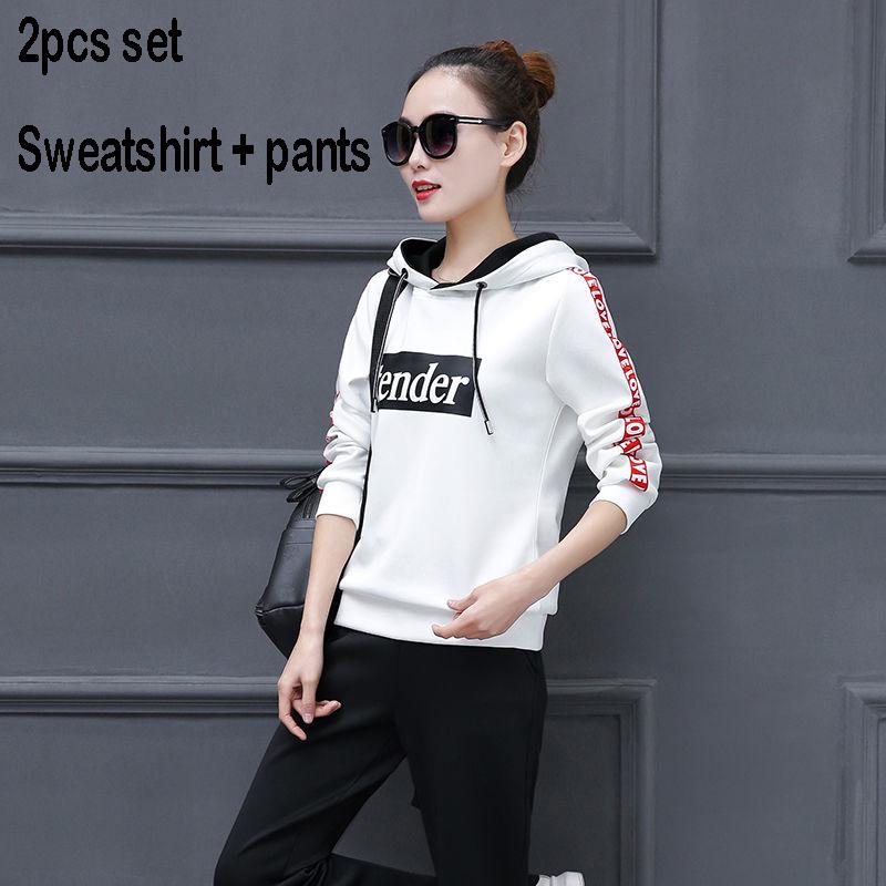 Long-sleeved casual sweatshirt set large size spring and autumn women's 2pcs set wild