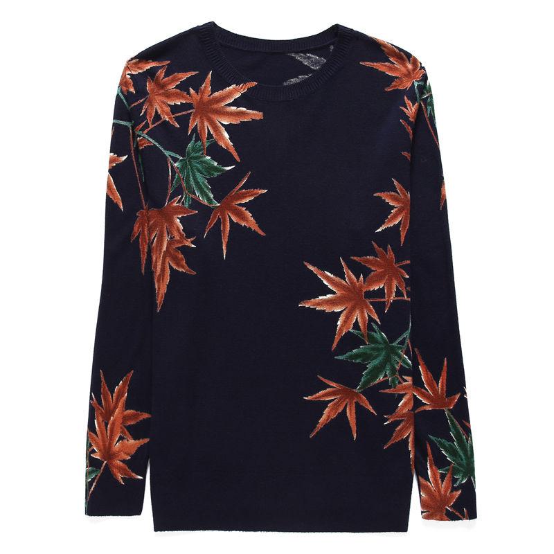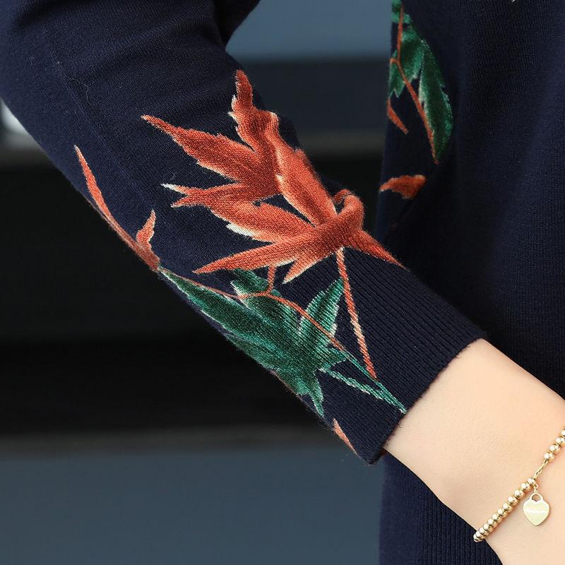 Maple Printed Sweater Women Casual Long Sleeve Pullover Elegant Street wear O-neck Jumper Loose Knitted Woolen Sweater