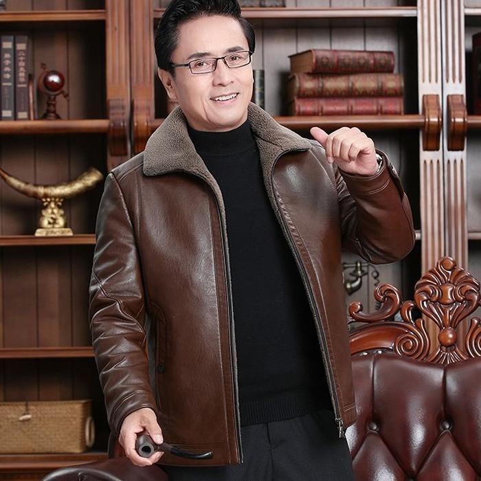 Men's Leather Jacket Clothes Coat Fur One Plus Velvet Thickening Dad Casual Winter Clothes