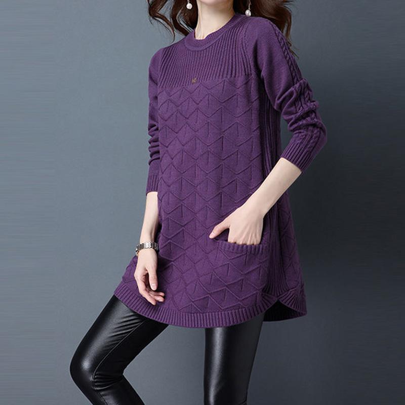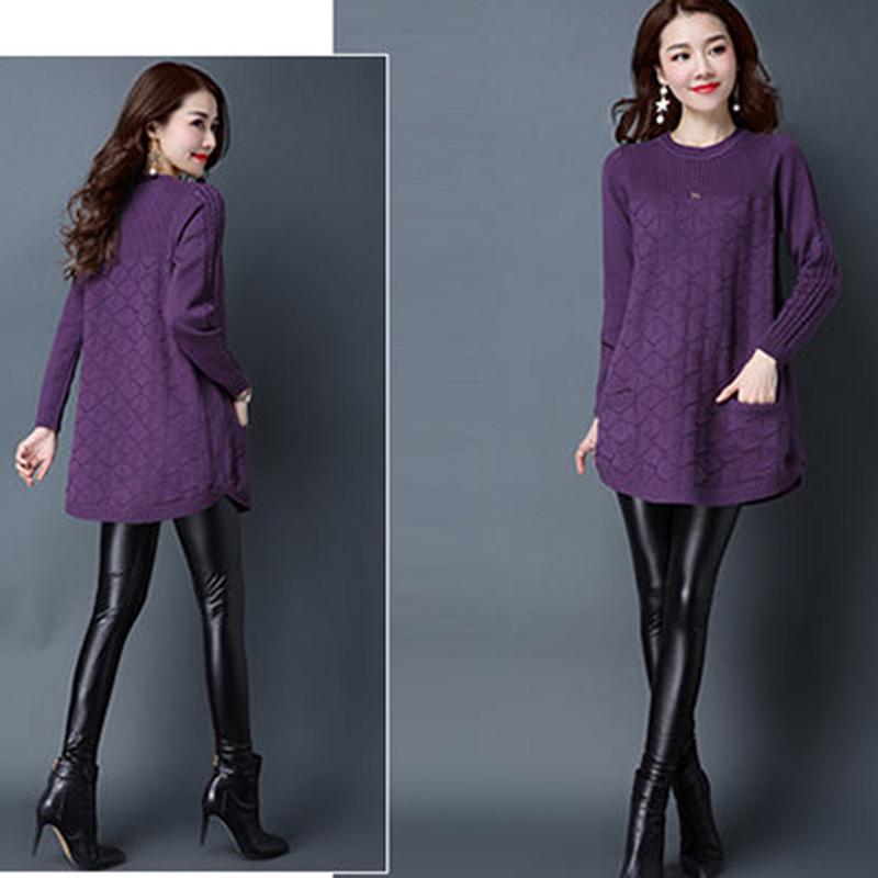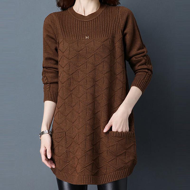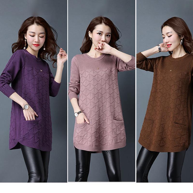 Mid-length Sweater Women Low Round Neck Spring and Autumn Korean Version of The Large Size Pullover Loose Knit Bottoming Shirt Sweater Skirt