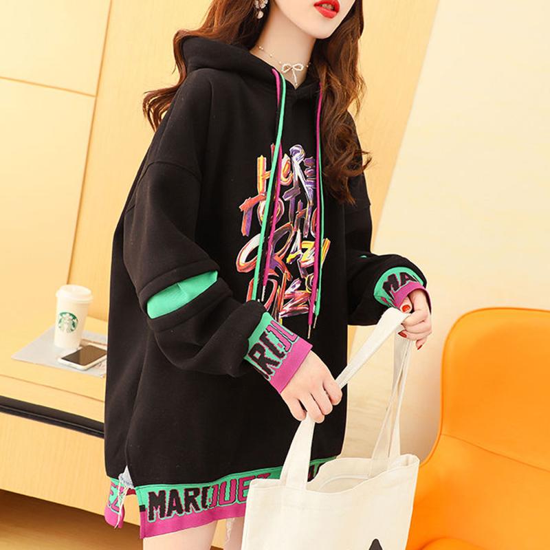 Middle Long Female Hooded Sweater Plus Velvet Thick Korean Coat Loose Wild Fashion Street Top