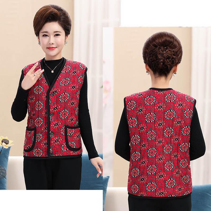 Mother's Vest Ladies Plus Velvet Middle-aged and Elderly Warm Jacket Autumn and Winter Wear Outer Wear Thicker