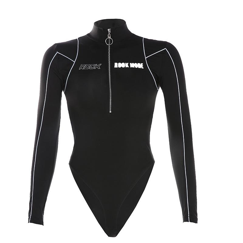 Overalls for Women Jumpsuit Black with Zipper Long Sleeve Female Boydcon Bodysuit Body Sports Bodies Ladies Playsuit