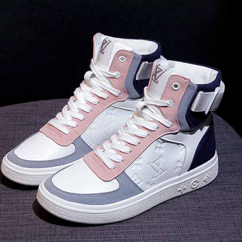 Plus Size 35-40 Summer Women Leather High-top Sneakers Students Breathable Running Basketball Shoes Shockproof Non-slip Skate Shoes