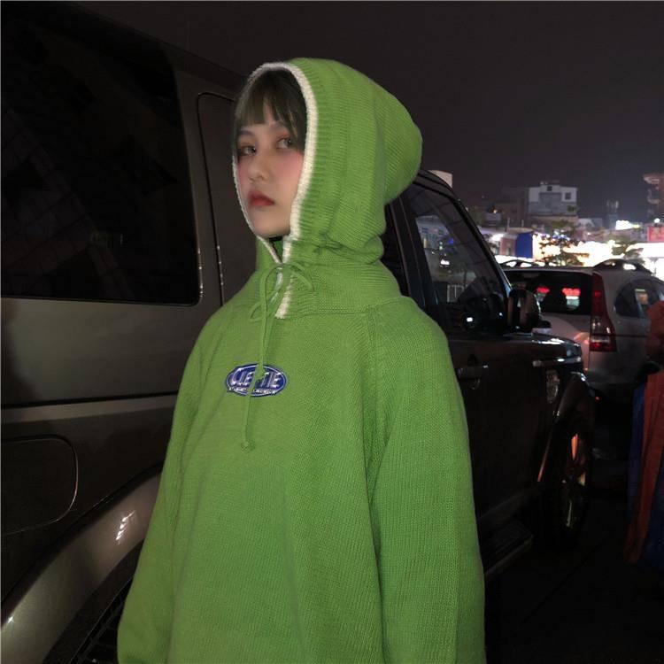 Pofulove Autumn Winter Loose Sweater Women Lazy BF Sweater Hooded Long Sleeved Pullover Sweater Coat