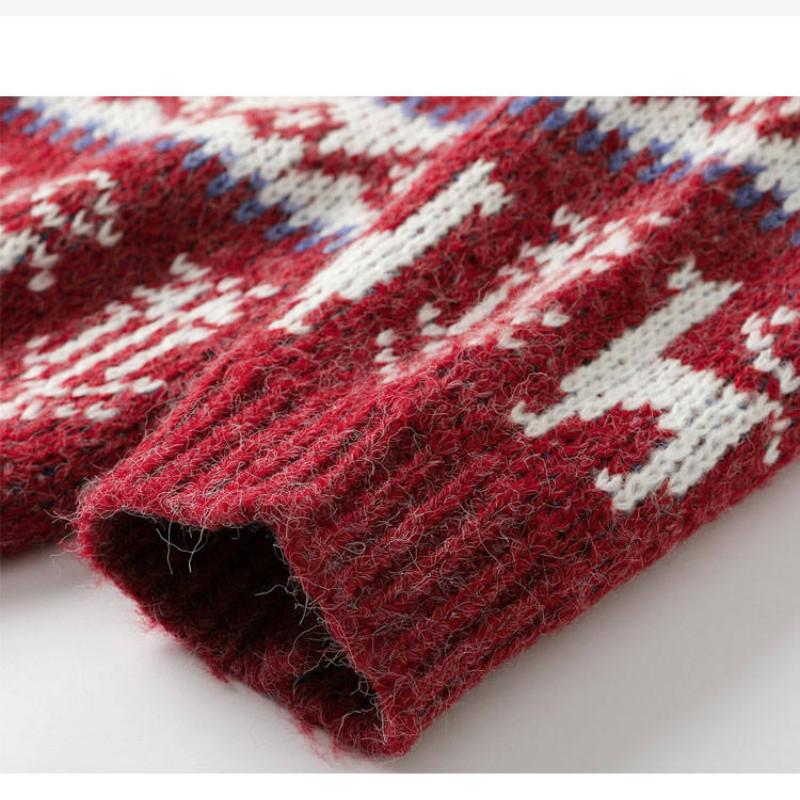 Pofulove Autumn Winter Retro Lazy Loose Vintage Mid-length Women Pullover Thickened Christmas Red Sweater
