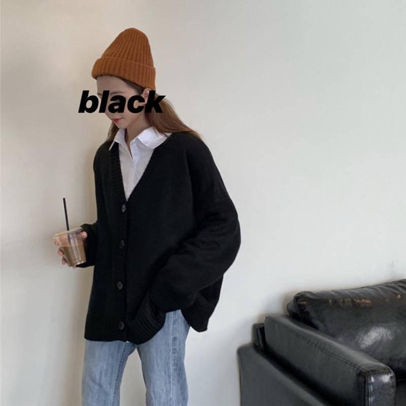 Pofulove Korean Loose V-neck Long-sleeved Sweater Women Retro Knitted Cardigan Jacket Autumn Winter