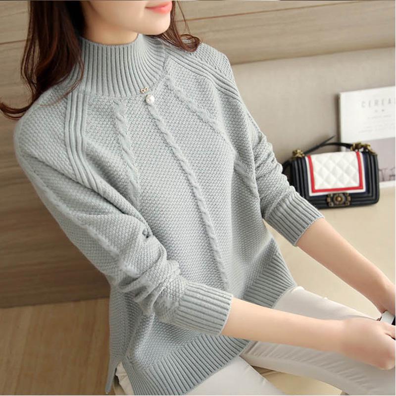 Pofulove Women's Chunky-knit Sweater Short Ribbed Mock Turtleneck Sweater Split Warm Pullover