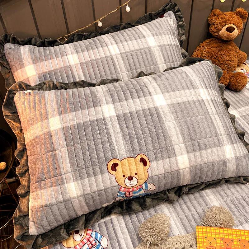 Princess Style Lotus Leaf Pillowcase Coral Velvet Thickening Bedroom Pillowcase Girls Dormitory A Pair of Pillow Core Liner Cover