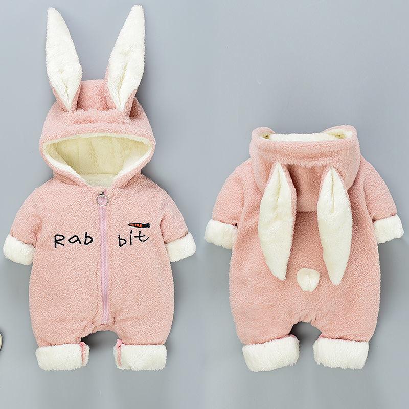 Rabbit Autumn and Winter Baby One-piece Travel Clothes Out Holding Clothes Plush Winter Baby Clothes Neonatal Winter Thickening