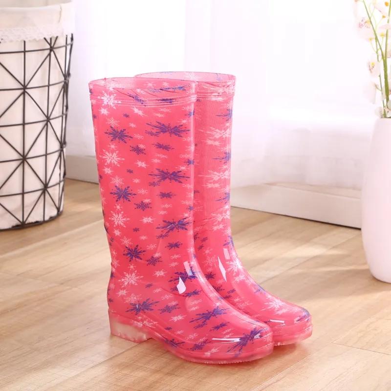 Rain Boots Women Print PVC Waterproof Shoes for Girls Knee-high Slip on Anti Skip Boots Long Tube Boots Fashion Size 36-41