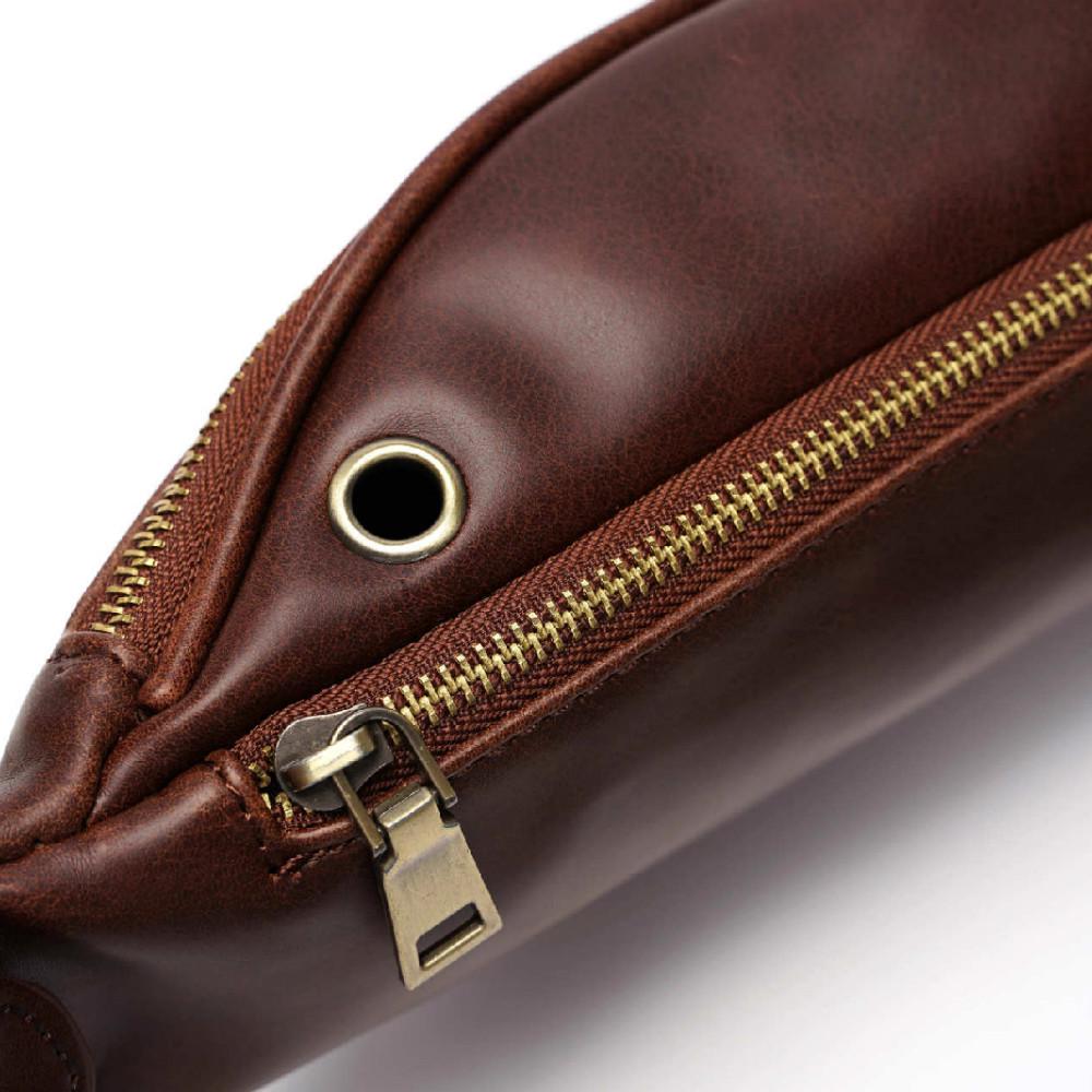 Retro Waist Bag Men Brown Leather Chest Bag Mobile Phone Bag Outdoor Sports Shoulder Bag