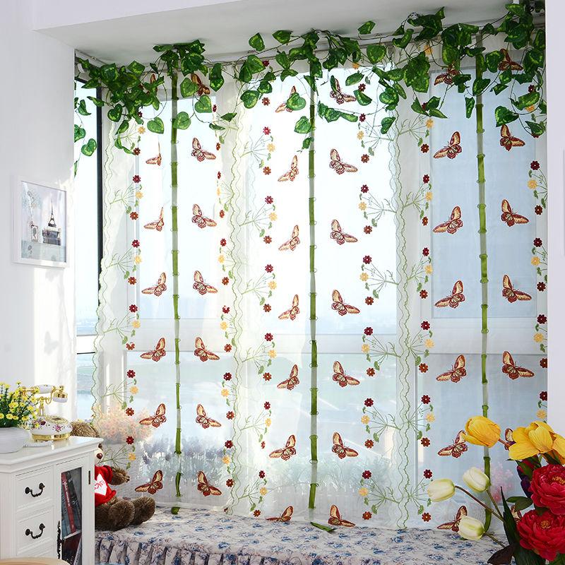 Romantic Butterfly Floral Voile Tulle Curtains Draw String Door Window Curtain Balcony Panel Sheer Curtains