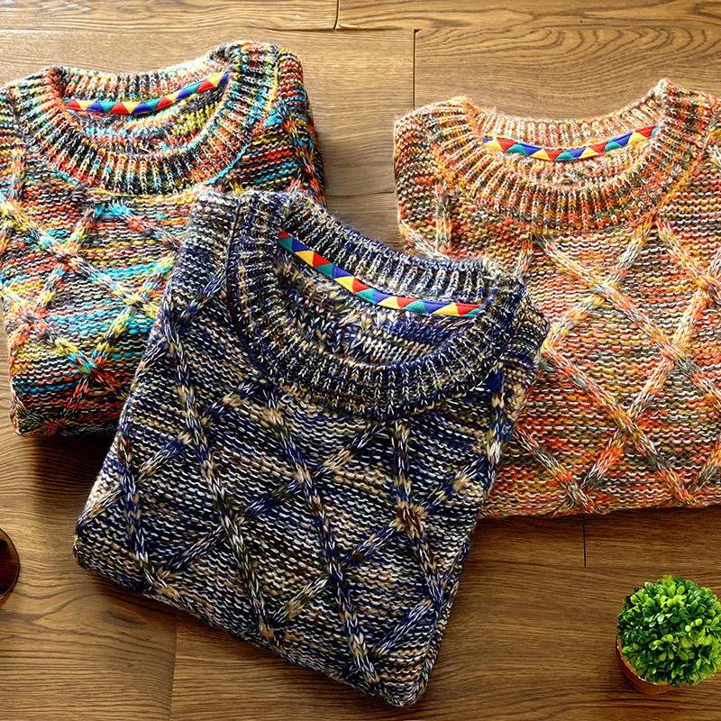 Round Neck Pullover Sweater Autumn Long-sleeved Thickening Casual Fashion Men's Knitted Sweater Warm Top Suitable for Young Men