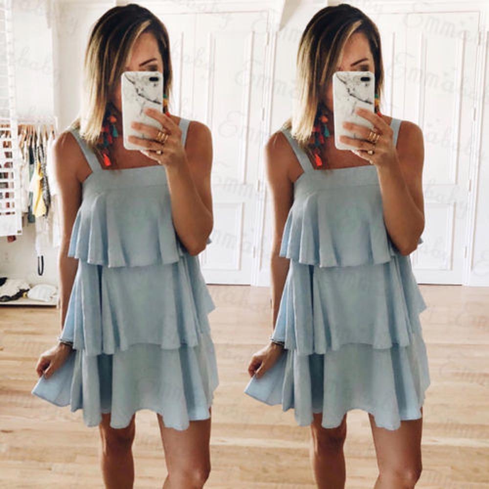 Sexy Woman Boho Sleeveless Dress Ruffles Party Evening Summer Beach Short Mini Dress New Fash