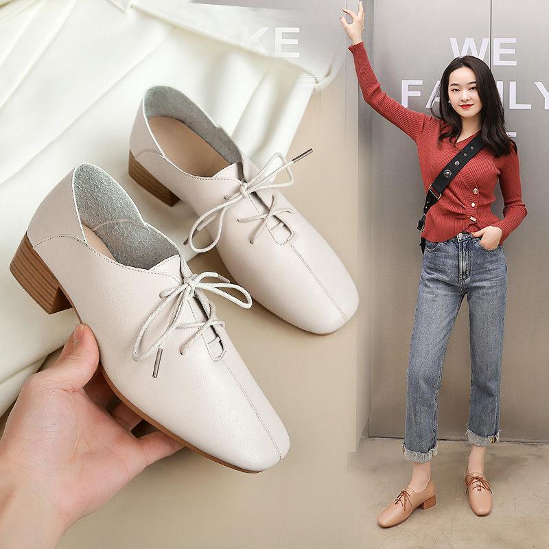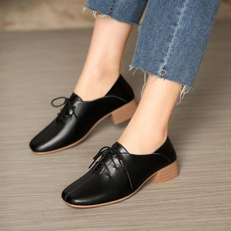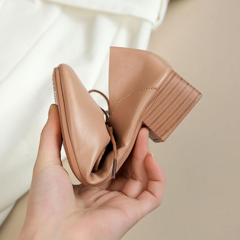 Soft Leather Single Shoes Women All-match Retro Mid-heel Shoes Thick Heel Soft Sole Pedal Casual Work Shoes Mid-heel Leather Shoes Women