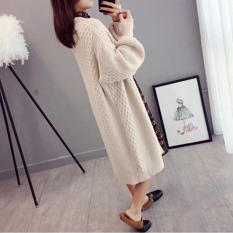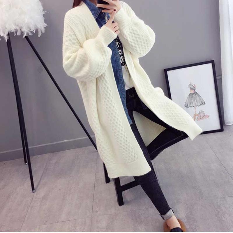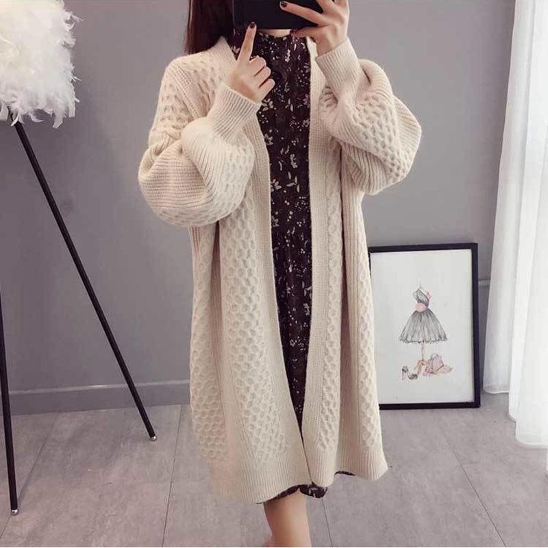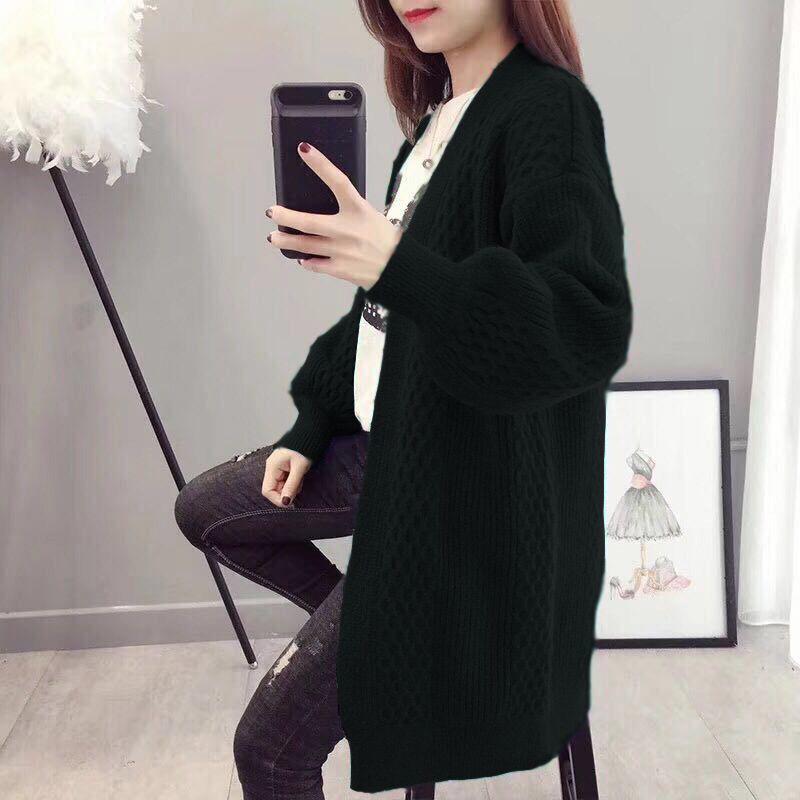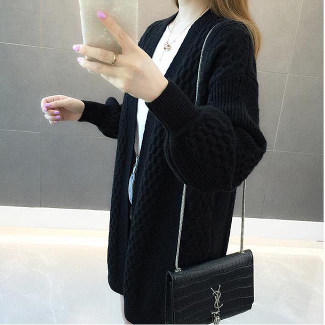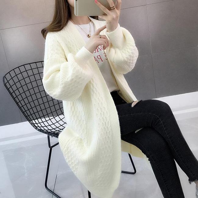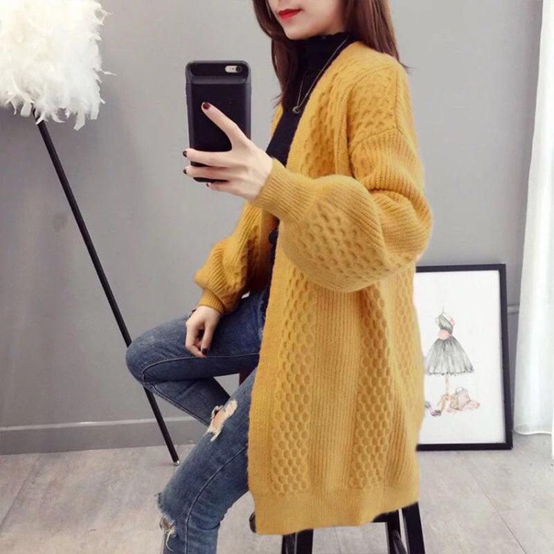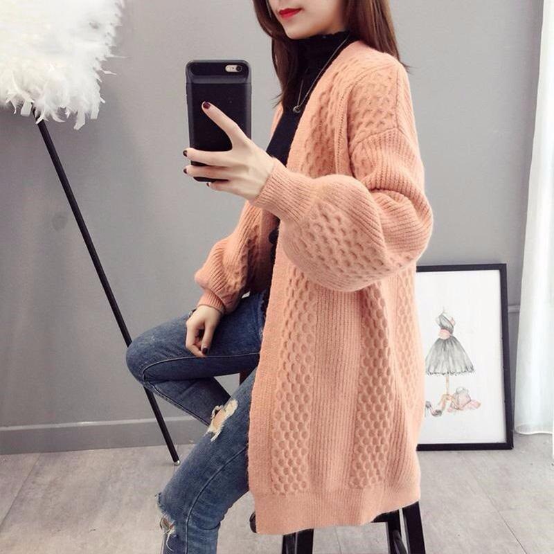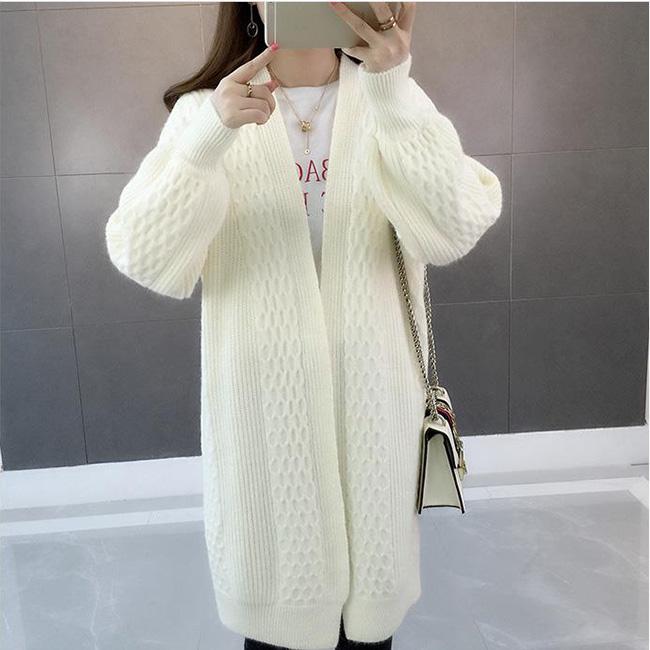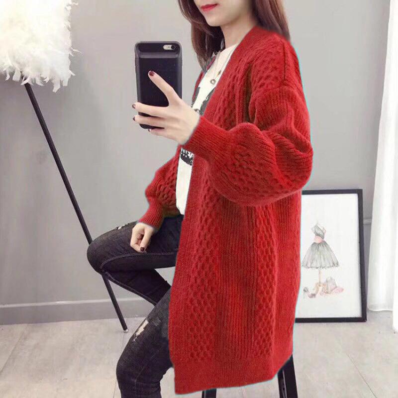 Spring and Autumn Fashion Cardigan Mid-length Knitted Coat Loose Long-sleeved Sweater All-match