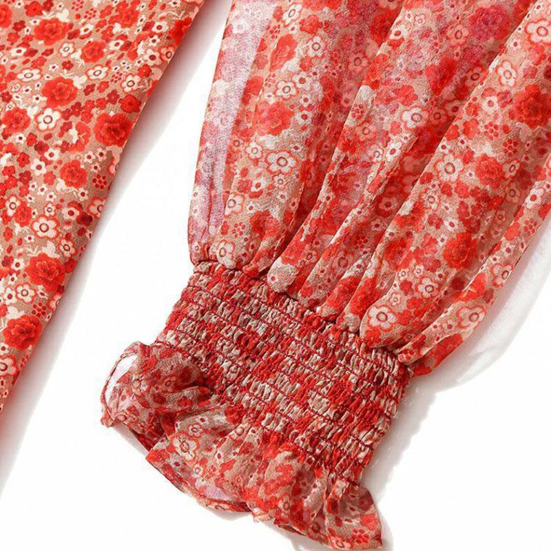 Spring and Autumn Floral Shirt Women's Long-sleeved All-match Chiffon Shirt Top Women