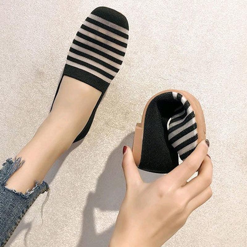 Spring and Summer Breathable Soft-soled Ballet Beanie Shoes All-match Flying Woven Lazy Shoes Striped Women's Shoes