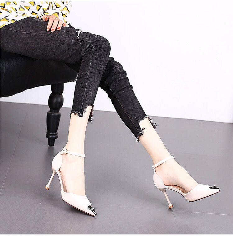 Spring Autumn High Heels Stiletto Metal Pointed French Girl Sandals Stiletto All-match Single Shoes