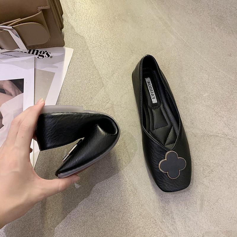 Square-toe Soft Leather Flat-bottomed Retro British Style Ladies' Leather Shoes Can Wear Lightweight Non-slip Soft-soled Leather Shoes for Work