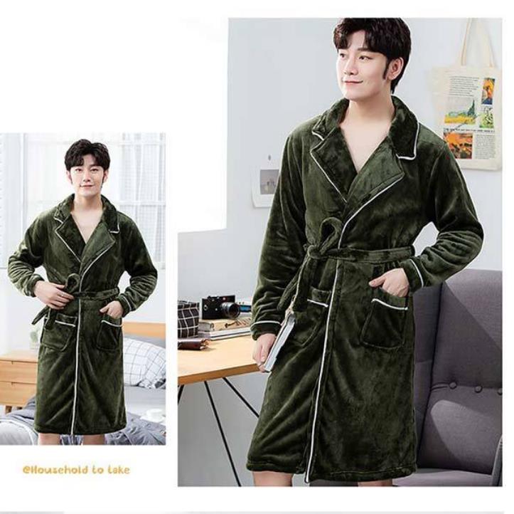 Suit Collar Men Pajamas Winter Thickening To Keep Warm Home Clothes Absorbent Robe Coat Bathrobe Long