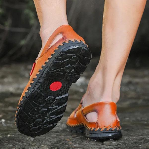 Summer Men's Sandals Genuine Cowhide Leather Breathable Hollow Beach Shoes Hole Shoes Soft Sole Breathable Waterproof Sandals