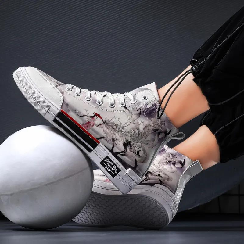 Summer Men's Shoes Net Red Graffiti High-top Canvas Shoes Men's Korean Style Trendy Shoes Men's All-match Casual Sneakers