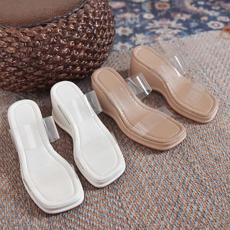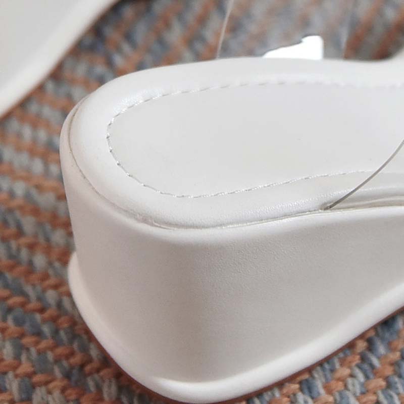 Summer Wedge Platform Sandals Women's Transparent Open Toe All-match One Word Waterproof White High-heeled Slippers Temperament Vacation Beach Sandals