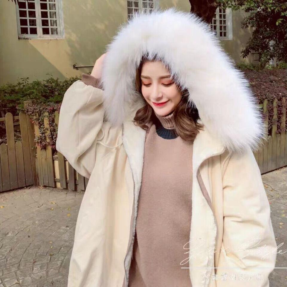 Tooling Padded Jacket Women Winter Korean Mid-length Large Fur Collar Loose BF Thick Plus Velvet Padded Jacket