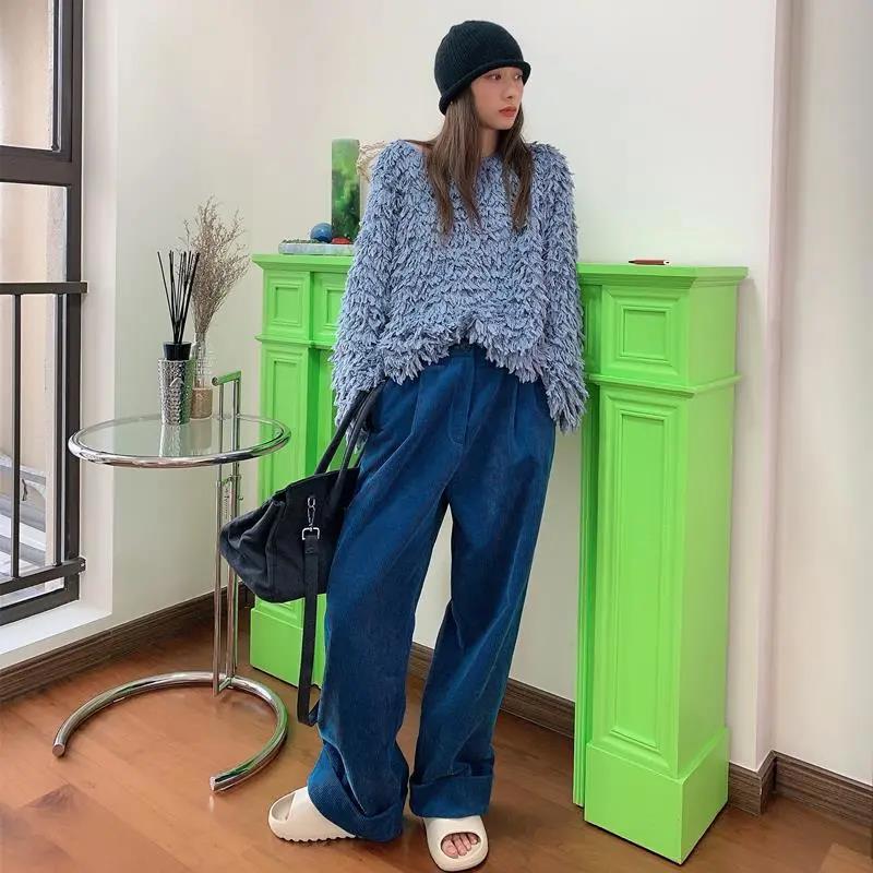 Wickn Glen Pants Spring and Autumn Straight High Waist Vertical Green Strips Wide