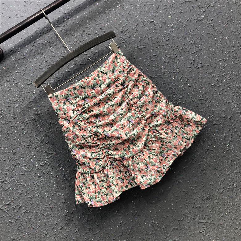 Women Skirts Floral Printed A-line Mini Skirts Ruffles Pleated Skirts Beach Holidays Casual Skirts