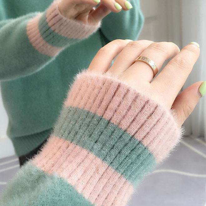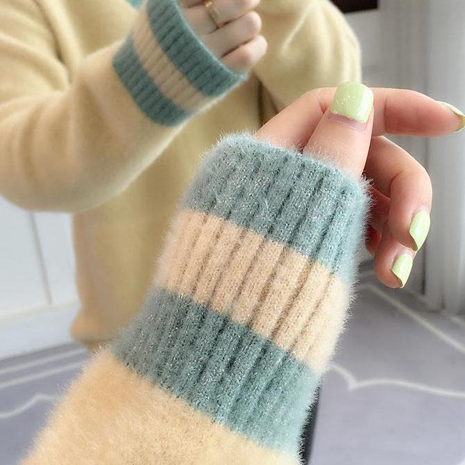 Women's Autumn and Winter Imitation Mink Velvet Thickened Pullover Sweater Women's Short V-neck Loose Long Sleeve Versatile Sweater