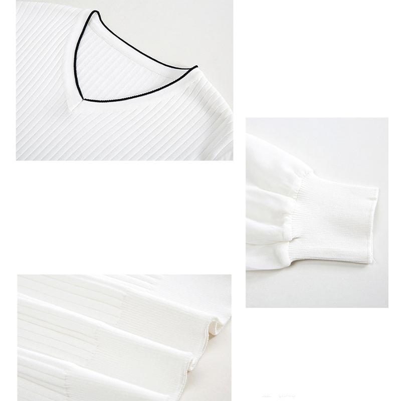 Women's Autumn/Winter Knitted Sweater Lace Mesh Embroidered Sleeves Sweater Printed V-neck Loose Knitted Sweater