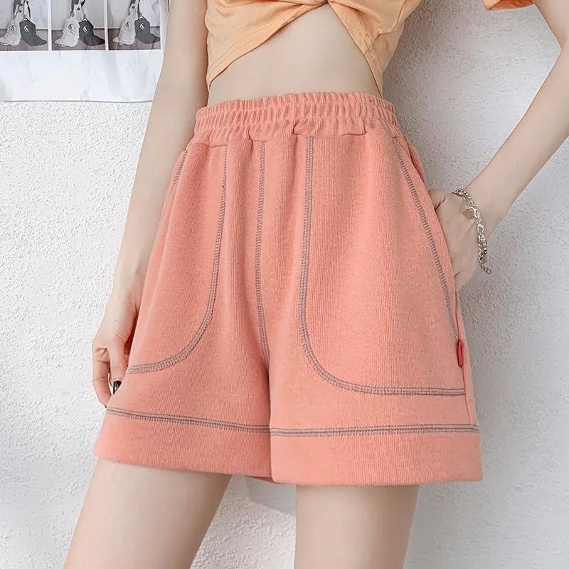 Women's Cotton Shorts Summer Casual Loose Sports Korean Students Elastic Waist A-line Wide Legs Wear Thin Ins Cute Girl Fitness Jogging Pants