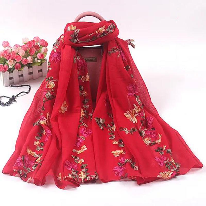 Women's Embroidered Scarf Korean Style Acrylic Embroidered Scarf Chiffon Long All-match Gauze Scarf Four Seasons Silk Scarf Shawl