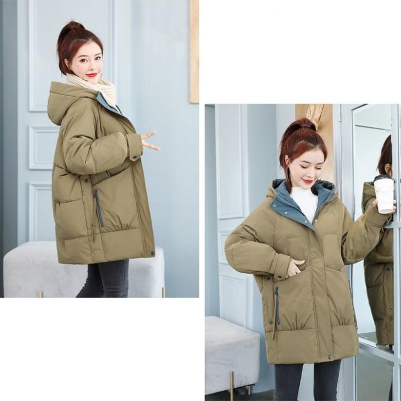 Women's Mid-length Down Jacket Winter Korean Loose Cotton Clothes Casual Hooded Padded Jacket
