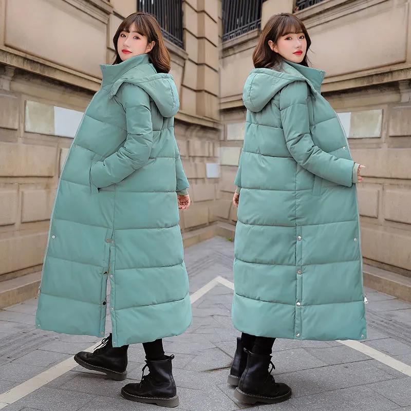 Women's Mid-length Down Jacket Winter Korean Loose Cotton Clothes Casual Hooded Padded Jacket Quilted Jacket
