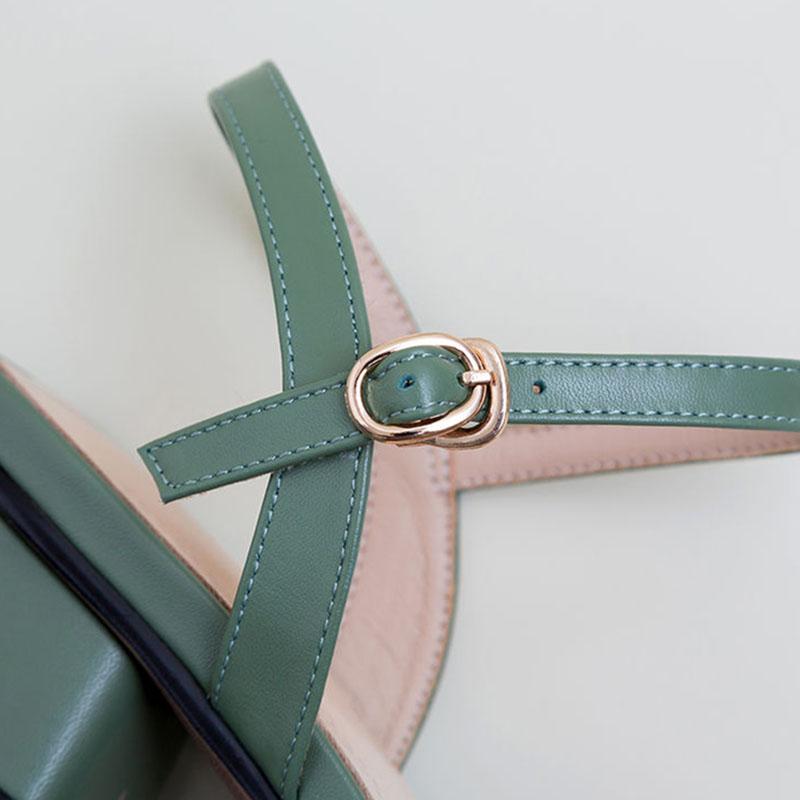 Women's Soft Leather Sandals Summer All-match Medium-heel Open-toe Sandal One Word Buckle Thick Heel Outer Wear Shoes Vintage Temperament Sandals