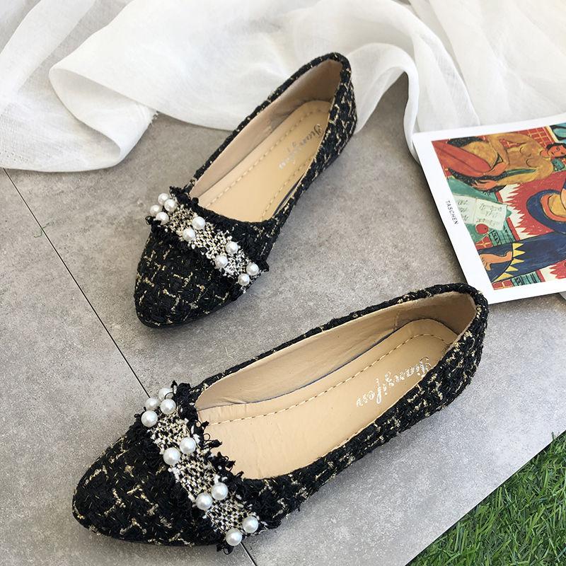 Women's Spring and Autumn Beanie Shoes Women's Flat-bottomed All-match Flat-bottomed Student Shallow Mouth Single Shoes, Social One-legged Lazy Shoes