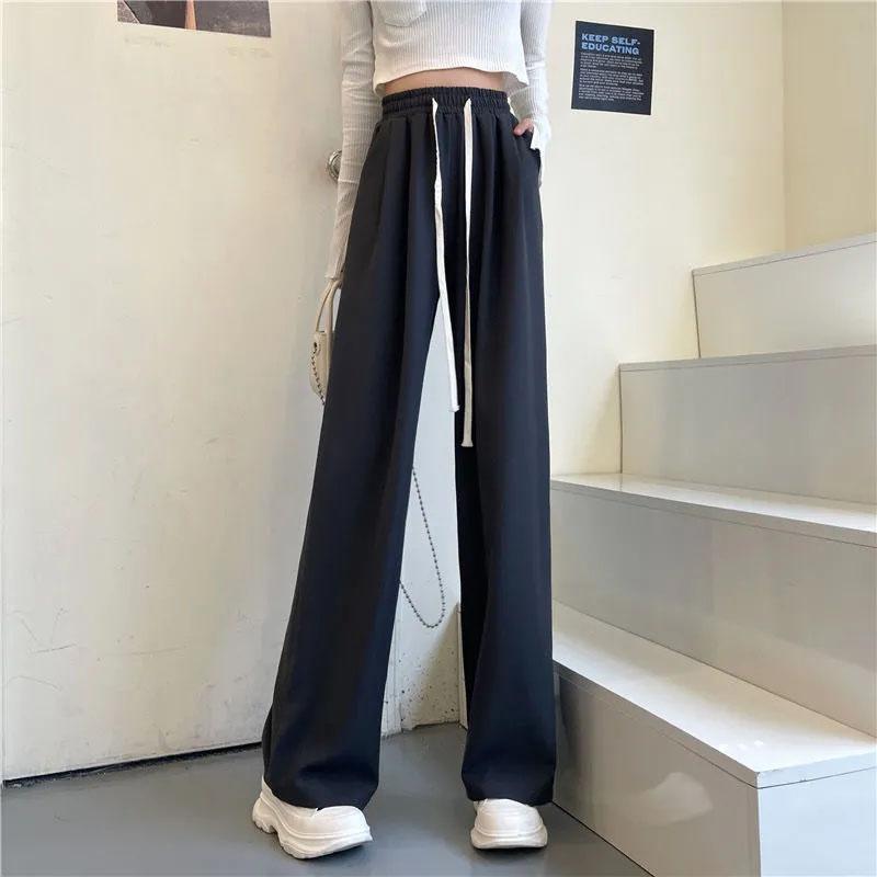 Women's Spring and Summer Loose Casual Pants Korean Style Wide-leg Pants High Waist Drape Drawstring Straight Mopping Trousers Fitness Jogging Pants