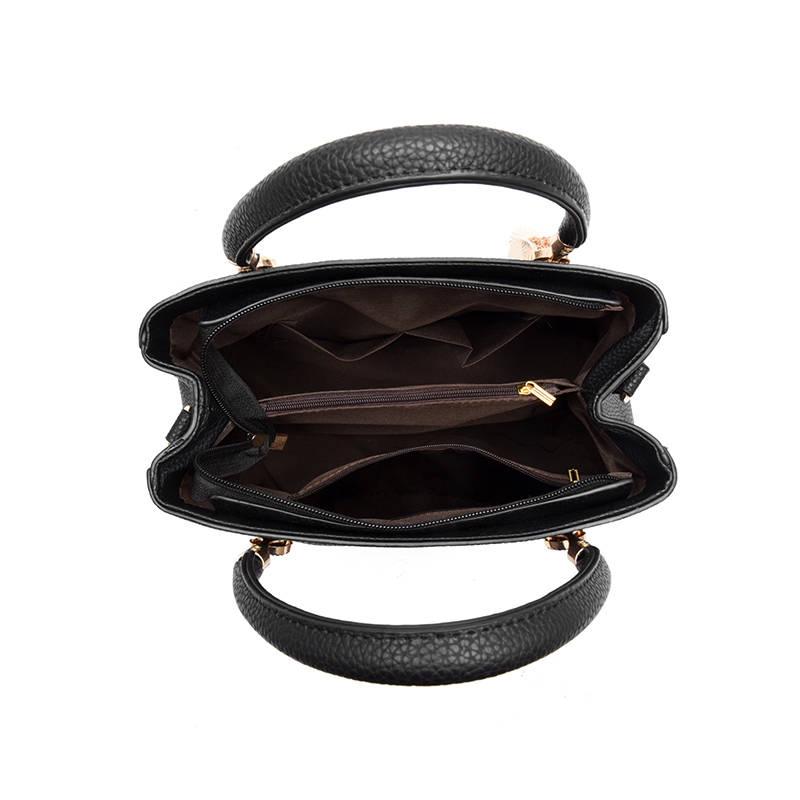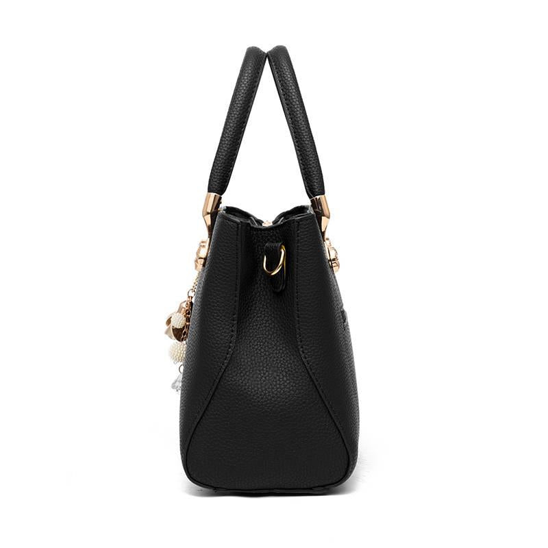 Women's top-handle bag leather handbag zipper shoulder bags With metal pendants and free wallet