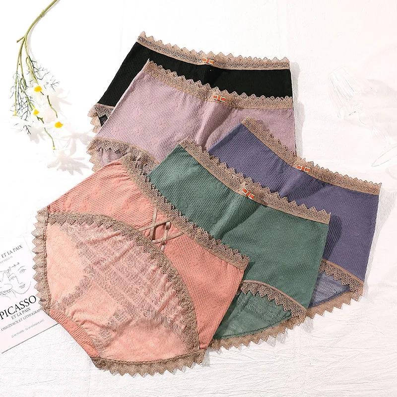 Women's Underwear High Waist Cotton Back Lace Hollow Cotton Antibacterial Bottom File Abdominal Lifting Hip Breathable Ladies Transparent Briefs