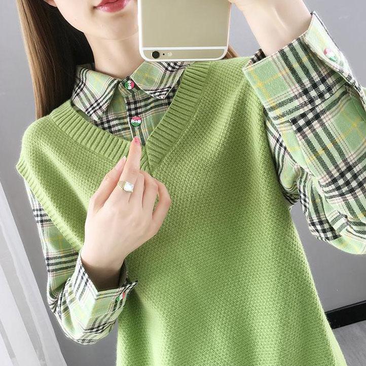Women's Waistcoat Patchwork Knitted Tops Spring and Autumn Lapel Neck Large Size Tops Loose Casual Knitted Pullover