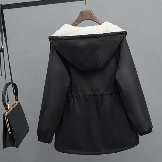 Women's Winter Casual Warm Cotton Jackets Large Size Solid Color Loose Thickened Hooded Cotton Coats