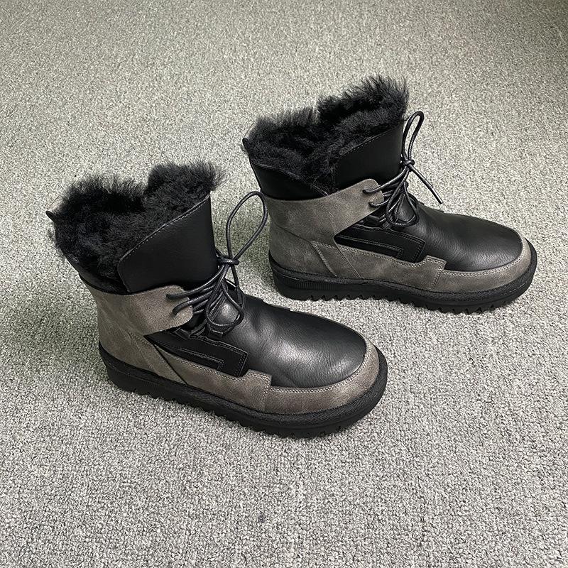 Women's Winter Shoes Snow Boots Fur Boots Black Ankle Booties Goth Punk Shoes Genuine Leather Boots Warm Plush Boots