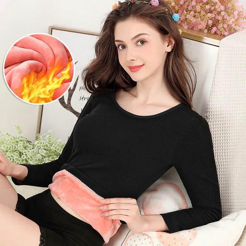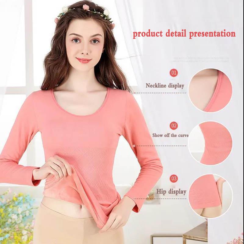 WTEMPO Plus Velvet Bottoming Shirt Women Autumn and Winter All-match Thick Round Neck Slim-fit Inner Warm Clothes